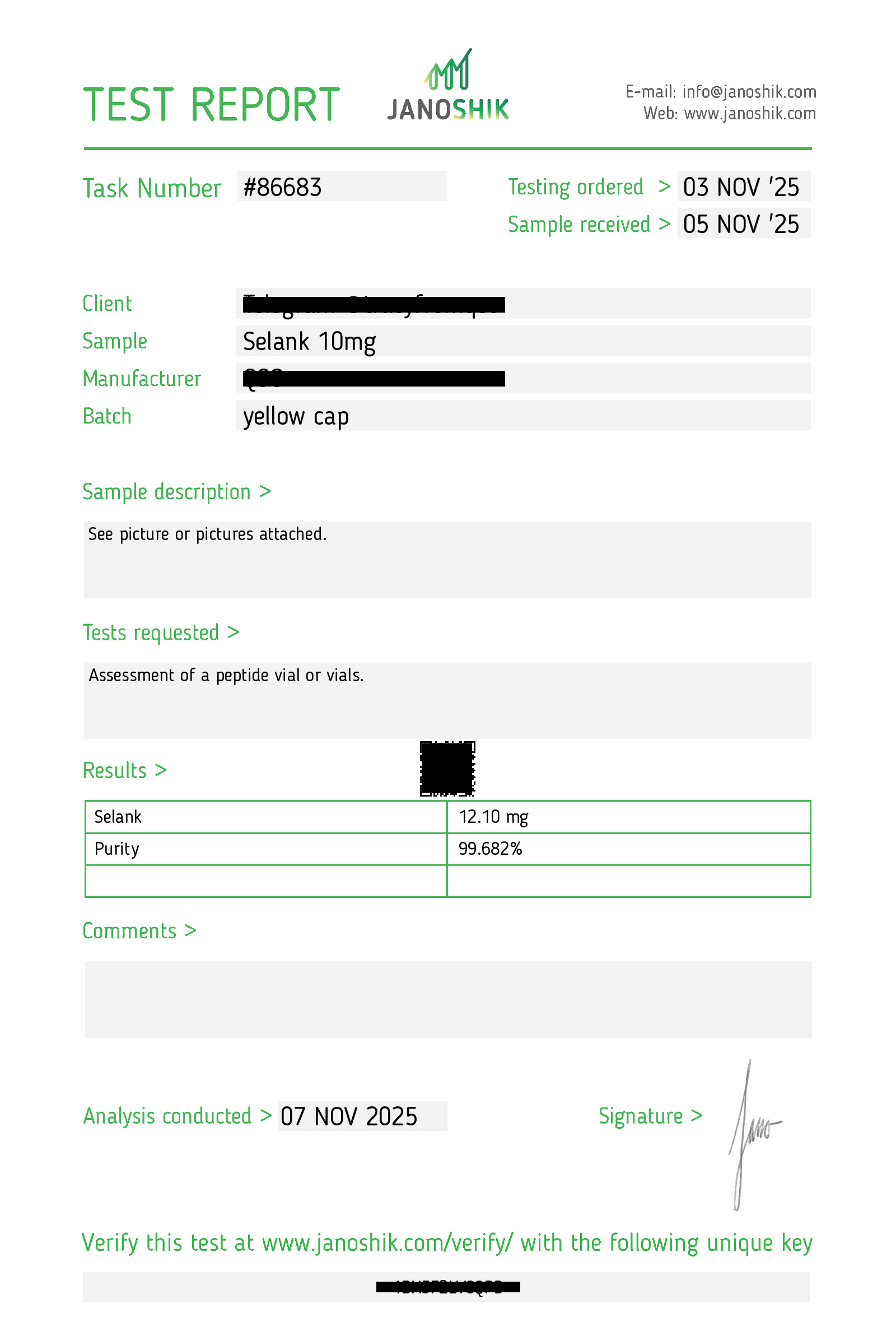 Selank is a synthetic peptide derived from tuftsin and studied for its potential anxiolytic and nootropic effects. It’s commonly used to support a calmer stress response, steadier mood, and improved mental clarity without the heavy sedation associated with many traditional anti-anxiety options. Some research also suggests it may influence immune signalling, though more data is needed.